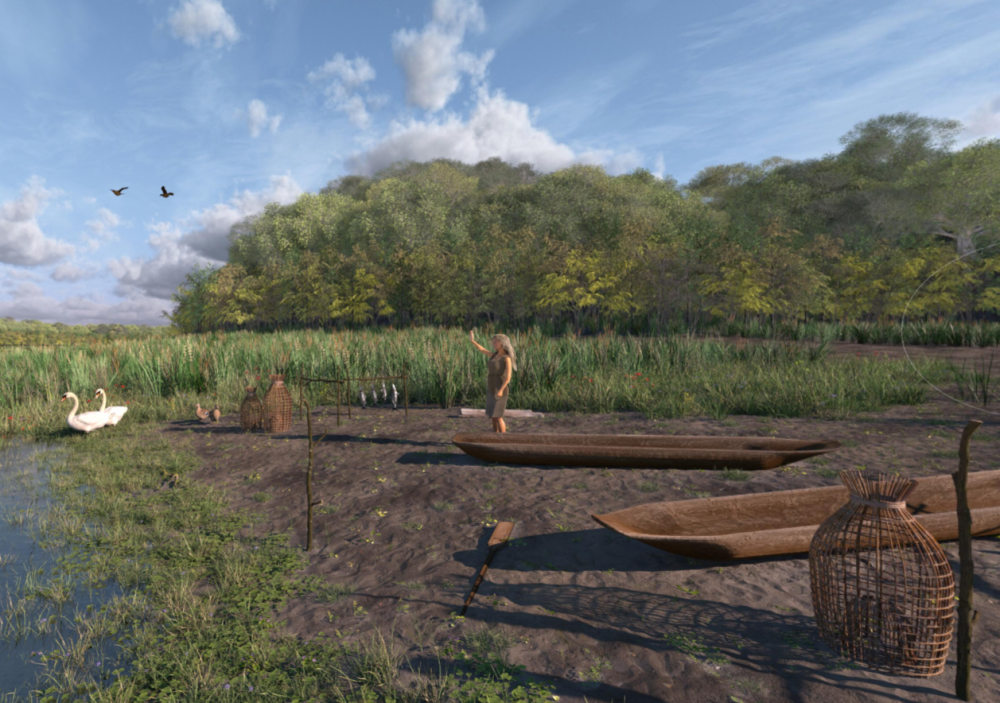 De archeologische teams van ADC Archeoprojecten en RAAP troffen sporen van de palen van ronde hutten en heel veel aardewerk, vuurstenen, houtskool, dierlijke resten en haardkuilen aan. De reconstructie toont een waterrijk boslandschap, rijk aan vis en wilde dieren, maar ook runderen, varkens en honden.